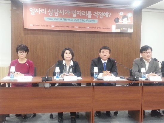 지난 11일 서울시의회 별관 2층에서 25개 서울시 자치구 일자리플러스센터 상담사 60여명과 담당공무원등 80여명이 모여 정규직화를 요구하는 토론회를 개최했다. 이번 토론회는 서울시의회가 주최하고 기획경제위원회 이윤희의원(더불어민주당 성북1) 주관으로 진행되...