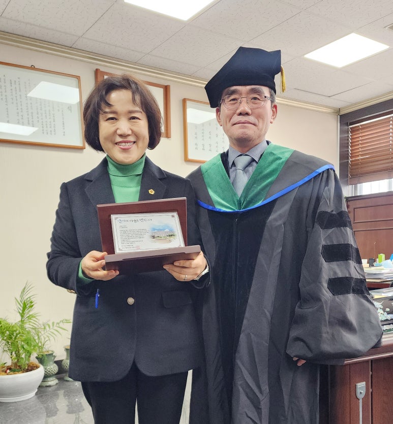 서울시의회 봉양순 의원, ‘교육환경개선’ 대진고 감사패 수상 서울시 예산 3억 확보, 운동장 스탠드·옹벽 정비 등 숙원사업 해결 지원 학생 안전과 교육 환경 개선 위한 실효성 있는 의정활동에 최선 다할 것 서울시의회 봉양순 의원(왼쪽), ‘교육환경개선’ 대진...