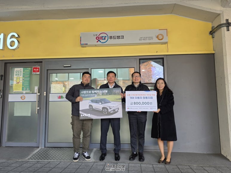 기아자동차 창동지점, 도봉구푸드뱅크마켓센터와 후원금 전달식 진행 기아자동차 창동지점, 도봉구푸드뱅크마켓센터와 후원금 전달식 진행 (시사프리신문=유영일 기자) 도봉구사회복지협의회(회장 김용추)에서 위탁 운영하는 도봉구푸드뱅크마켓센터에서는 기...