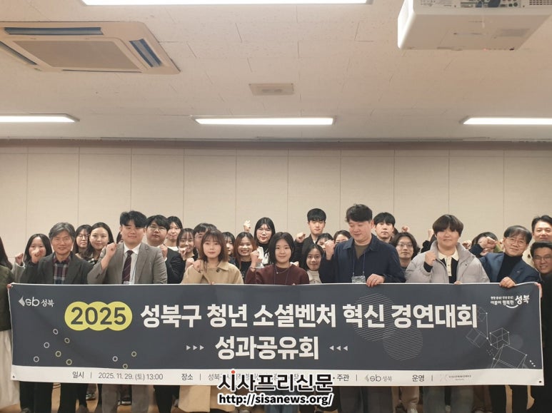 성북구, 청년 소셜벤처 혁신경연대회 성과공유회 개최 수상팀·대학생 참여한 사회적경제 성과 공유 ▲성북구, 청년 소셜벤처 혁신경연대회 성과공유회 개최 성북구(구청장 이승로)가 청년 소셜벤처 사업 성과를 점검하고 발전 방향을 모색하기 위해 지난 29일 성북구 사...