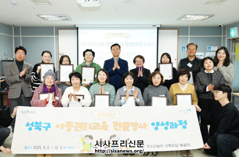 성북구, 아동권리교육 전문강사 양성과정 수료식 개최 11회차 80시간 과정 운영 및 13명 수료 아동인권옹호전문가 자격 취득 후 지역 시설 파견 예정 아동권리 교육 콘텐츠 개발·캠페인 참여 계획 ▲성북구, 아동권리교육 전문강사 양성과정 수료식 개최 성북구...