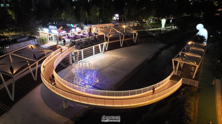노원구, 관광 가이드북 <뉴 렛츠노원> 발간 이런 좋은 곳을 노원구민만 누렸다고? 같이 알고 같이 즐기자! 국토대전 전국 최초 5년 연속 수상·로컬100 선정 등 관광 경쟁력 반영 야간에 바라본 당현마루의 전경. 정면에 보이는 달빛브릿지(초승달 모양의 반원 형태...