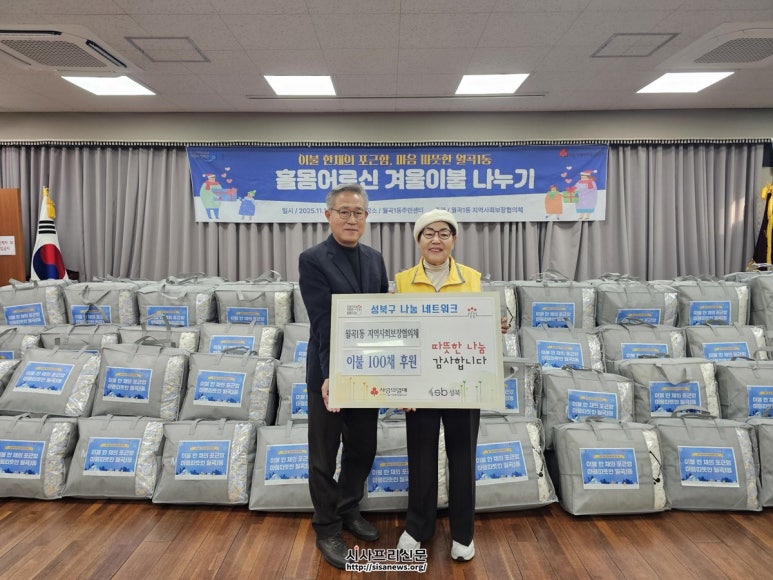 성북구 월곡1동, 독거어르신 위한 ‘겨울이불 나눔’ 진행 거동 불편 어르신 가정방문 통한 직접 전달 성북복지재단 나눔네트워크 후원으로 홀몸어르신 100명 지원 성북구 월곡1동 지역사회보장협의체가 지난 11월 11일 독거 어르신들의 한파 대비를 위한 ‘겨울이불 나눔...