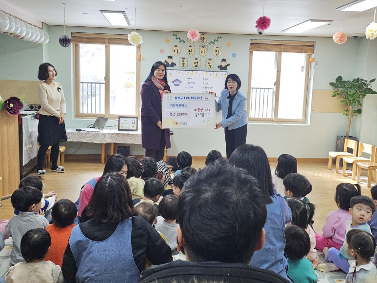가람어린이집, 돈암2동에 바자회 수익금 성금 기탁 성북구(구청장 이승로) 돈암2동 소재의 가람어린이집(원장:박영신)에서 지난달 23일 이웃돕기 성금 129만 원을 돈암2동주민센터에 전달하는 행사가 있었다. 이날은 어린이집 졸업식이 진행되는 날로서 재원생 전원과 가족들...
