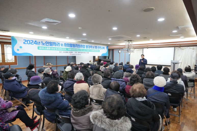 성북구, 어르신일자리사업 안전교육으로 시동 걸어 2024년 노인일자리 및 사회활동지원사업 참여자 발대식 및 안전교육에 120명 어르신 참여 참여 어르신, ‘일자리로 사람도 만나고 손자 용돈 줄 수 있어 기뻐’ 성북구(구청장 이승로)가 성북노인종합복지관(관장 송향...