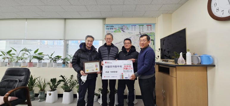 서울모자동우회, 석관동에 『따뜻한 겨울나기』 성금 전달 작년에 이어 따듯한 기부를 이어온 서울모자동우회에 성북구청장 감사장 수여 서울모자동우회(대표 송기종)가 어려운 이웃을 위해 지난 15일 성북구(구청장 이승로) 석관동주민센터에 “따뜻한 겨울나기” 성금 100만 ...