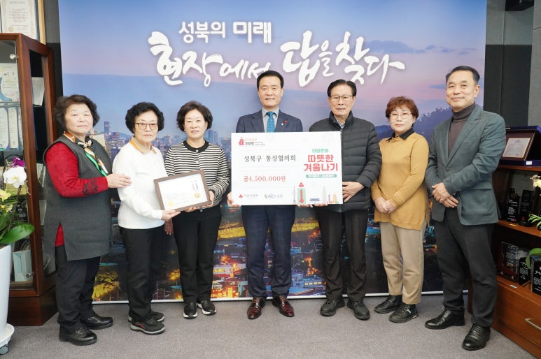 성북구 통장협의회, 성금 450만 원 전달 2020년부터 누적 성금 총 1,603만 원 달해 김귀분 성북구 통장협의회장 “따뜻한 공동체를 만드는데 당연히 빠질 수 없어”라며 성금 기탁 이유 밝혀 이승로 성북구청장 “통장님들이야말로 따뜻한 복지공동체를 만드는 ...