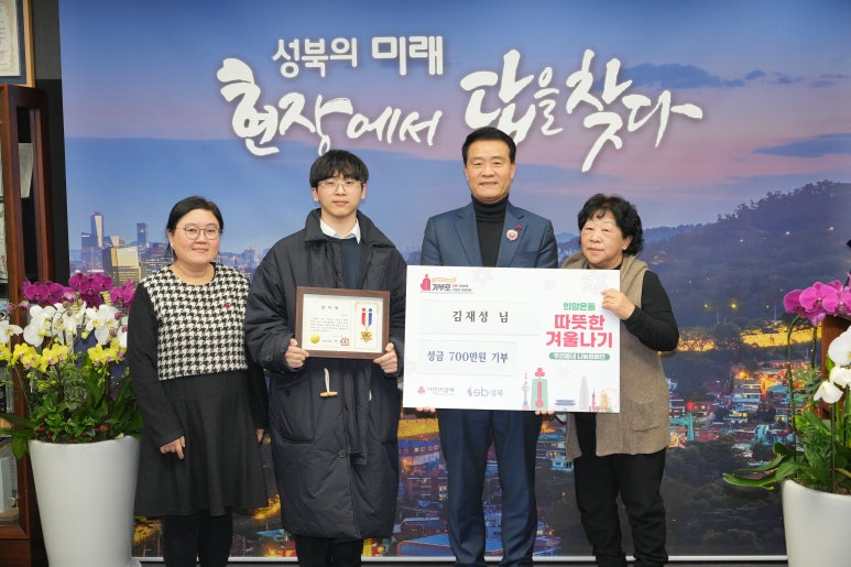 성북구, 아름다운 청년 기부 화재 “6개월 인턴 월급 7백만 원 6·25 참전용사 위해 써주세요” 지난달 29일 20대 청년 김재성 님이 성북구청(구청장 이승로)에 성금 700만 원을 건넸다. 김재성 님은 6개월간 인턴 과정을 끝내고 귀가하는 길에 그동안 받은 월...