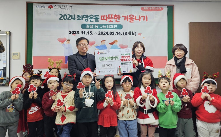 ‘어린이 산타들’ 길음1동주민센터 찾아 이웃 돕기 성금 전달 지난 21일 크리스마스를 앞두고 성북구(구청장 이승로) 길음1동주민센터가 아이들의 웃음소리로 시끌벅적했다. 산타 복장을 한 어린이들이 크리스마스 인사와 나눔장터 판매 수익금으로 마련한 성금을 전달하...
