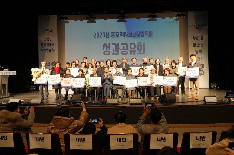 성북구 동 지역사회보장협의체 성과공유회 개최 성북구(구청장 이승로)가 지난달 29일 꿈빛극장(성북미디어문화마루)에서 한 지역사회보장협의체 위원 및 복지기관 종사자 250여 명이 참여하는 “2023년 같은 지역사회보장협의체 성과공유회”를 개최했다. 이날 성과공...