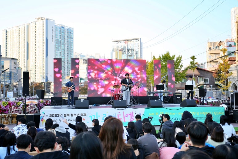 성북구, 청소년 동아리 문화축제 ‘까르페디엠’ 성료 성북구 청소년으로 구성된 동아리(20팀)가 직접 구성하고 참여한 청소년을 위한 자리 성북구(구청장 이승로)가 28일, 성북구청 앞 바람마당과 잔디마당에서 청소년 동아리가 직접 무대와 체험활동을 구성‧운영한 청소년 ...
