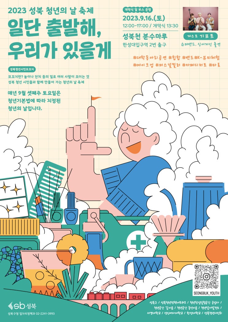 성북구, 청년의 날을 기념하여 성북천 분수마루에서 청년 축제 개최 성북구(구청장 이승로)가 9월 16일(토), 청년의 날을 기념하여 성북천 분수마루(한성대입구역 2번 출구)에서 「성북 청년의 날 축제 : 일단 출발해, 우리가 있을게」를 개최한다. 축제는 12시부...