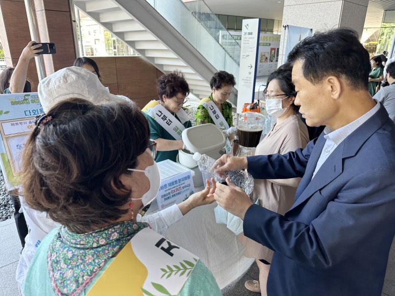 성북구, ‘다회용 컵 사용한 Day’ 캠페인 성료 일회용품 사용규제 계도기간 종료를 앞두고 다회용 컵 사용촉진 캠페인 추진 성북구(구청장 이승로)가 상월곡실버복지센터(센터장 김경회)와 함께 9월 6일 자원순환의 날을 맞아 구청에 방문하는 구민을 대상으로 ‘다회용컵...