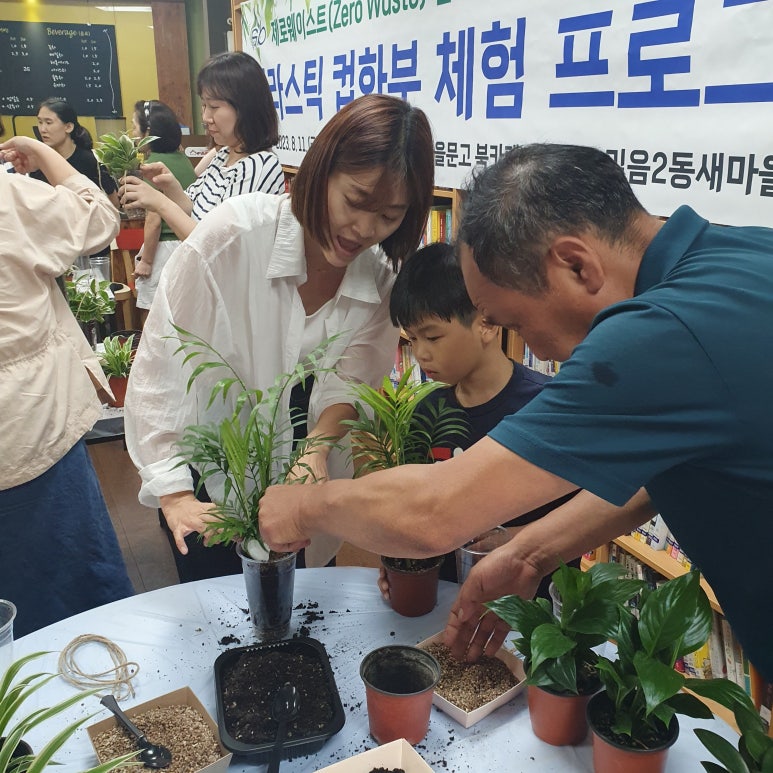성북구, 버려진 플라스틱 컵이 반려 식물 화분으로 변신 길음2동 새마을금고, 제로웨이스트 사업으로 플라스틱 컵 화분 만들기 체험 진행 성북구(구청장 이승로) 길음2동 새마을문고가 지난 11일 길음2동 북카페에서 친환경 성북구를 만들기 위한 제로웨이스트 행사를 진행했...