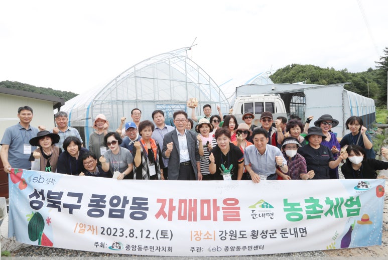 성북구 종암동 주민자치회, 자매마을 횡성군 둔내면에서 농촌 체험 활동 종암동 주민자치회, 둔내 고랭지 토마토 축제 축하사절단으로 방문 및 활동 성북구(구청장 이승로) 종암동 주민자치회(회장 신정희)가 지난 12일 자매마을 횡성군 둔내면에 둔내 고랭지 토마토 축제 축...