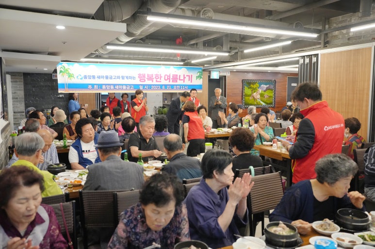 성북구, 종암동 새마을금고 여름나기 삼계탕 행사 홀몸 어르신 100명 초청 삼계탕 대접 초복을 앞둔 지난 21일 이슬비가 내리는 날씨에도 불구하고 성북구(구청장 이승로) 종암동에 위치한 유정식당(사장 최필금)에서 웃음꽃이 피는 동네잔치가 열렸다. 때 이...