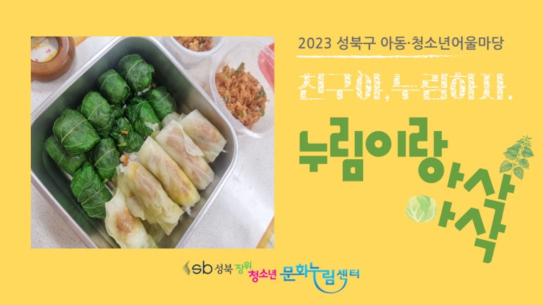 성북구립 장위청소년문화누림센터, ‘친구야, 누림하자’ 운영 성북구 아동·청소년어울마당 ‘누림이랑 아삭아삭’ 비대면 요리 활동 성북구(구청장 이승로) 장위청소년문화누림센터에서 2023년 성북구 아동·청소년어울마당 '친구야, 누림하자' 프로그램을 운영한다. 아동...
