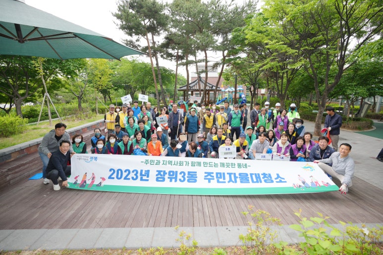 성북구 장위3동, 5월 주민자율 대청소 활동에 나서 성북구(구청장 이승로) 장위3동주민센터(동장 이성관)는 지난 5월 12일 장위3동 마을공원에서 직능단체, 주민, 공무원, 환경미화 공무관 등 100여 명이 참여한 가운데 ‘주민과 지역사회가 함께만드는 깨끗한 동...