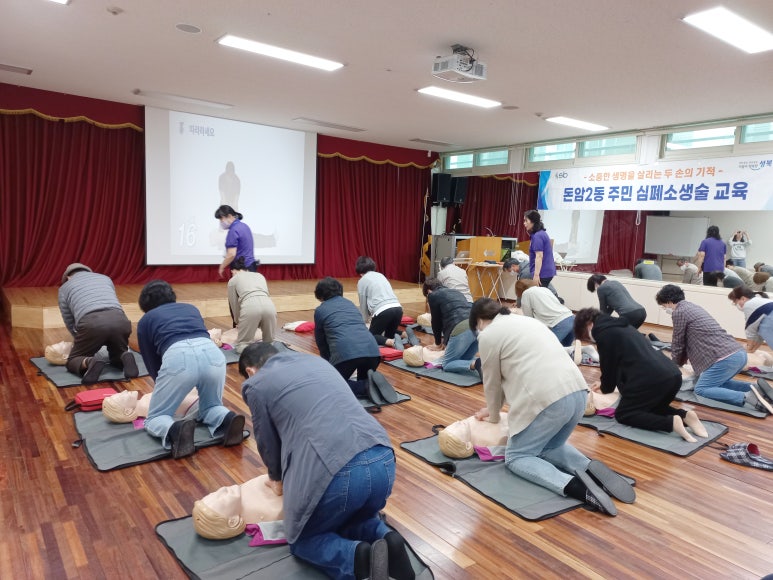 성북구, 돈암2동 주민자치회 CPR 교육 실시 성북구 돈암2동 주민자치회(회장 서경동)가 지난 15일 돈암2동주민센터 강당에서 주민 대상으로 심폐소생술 교육을 진행했다. 이날 교육에는 평일에 따로 시간을 내기 어려운 직장인 및 초중고생을 동반한 가족 등 주민 ...