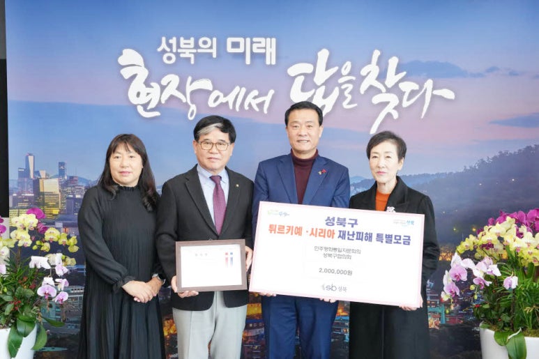 성북구, 튀르키예·시리아에 성북구민 온정의 손길 답지 민주평화통일자문회의 성북구협의회 성북구(구청장 이승로)가 튀르키예·시리아 지진피해 구호모금을 시작한지 일주일이 지난 지금, 성북구긴급구호센터에는 주민들이 보내오는 성금과 구호물품으로 열기가 가득하다. ...