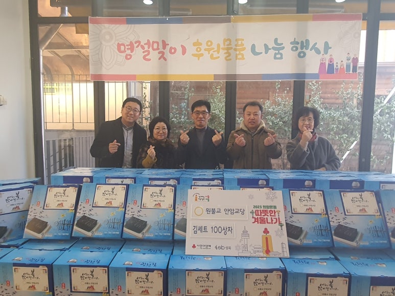 원불교 안암교당, 설맞이 김세트 100상자 기부에 감사 명절마다 구호활동의 일환으로 교우 기금 마련해 기부에 동참 성북구 안암동 주민센터는 설 명절을 앞두고 #원불교 #안암교당 에서 100만원 상당의 #김 세트 100상자를 #기부 하였다는 훈훈한 소식을 ...