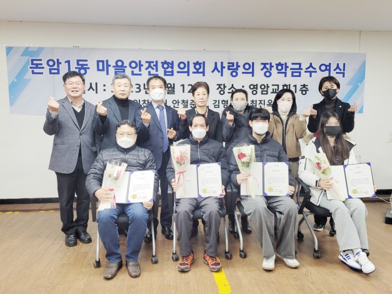 성북구 돈암1동 마을안전협의회, 사랑의 장학금 전달 지역 단체에서 지역 내 청소년을 위한 따뜻한 나눔을 실천 #성북구 #돈암1동 #마을안전협의회 (회장 송대호)는 12일 돈암1동 주민센터를 찾아 돈암1동에 거주하는 청소년 4명에게 장학금 각 50만원씩 사랑의...