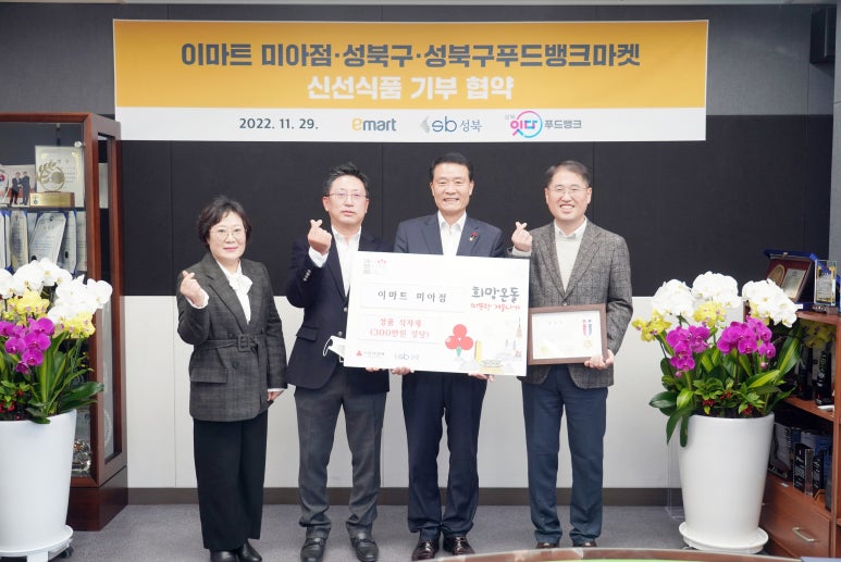 이마트 미아점·성북구·성북구푸드뱅크와 신선식품 기부 협약 #이마트 #미아점 이 성북구, 성북구푸드뱅크와 신선식품 기부 협약을 체결했다. 이번 협약은 이마트 전체 160개 점포 중 최초로 추진하는 사업으로 이마트 미아점은 매일 진열 후 매대에서 내리는 신...