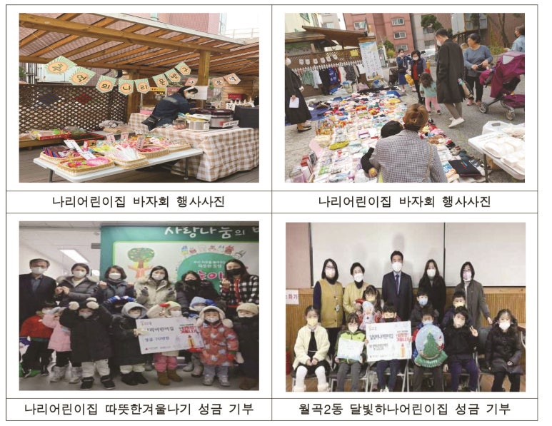 성북구 어린이집, 바자회 수익금으로 이웃돕기 실천 석관동 나리어린이집, 아트리치 어린이집 취약계층 대상『따뜻한 겨울나기』성금 기부 월곡2동 큰나무어린이집, 달빛하나어린이집, 동아라온어린이집 기부 동참 어린이집 아동 바자회 행사 통해 경제교육 및 이웃돕기 기부문화 ...