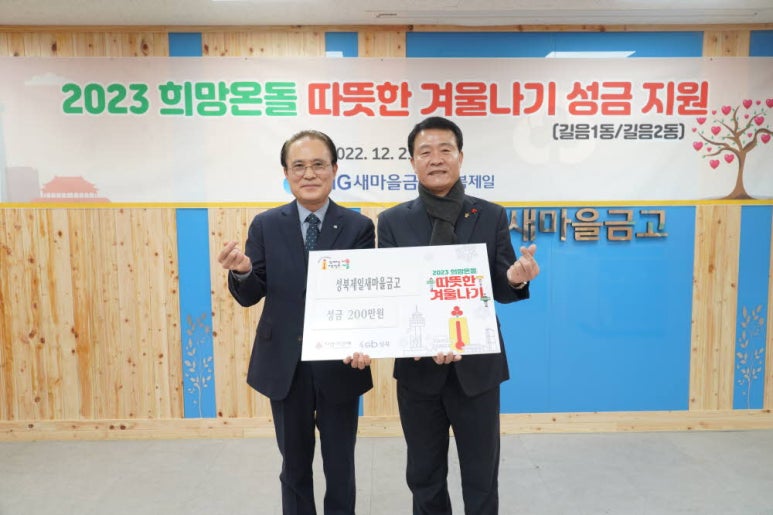 길음1동 성북제일새마을금고, 따뜻한 겨울나기 후원금 기탁 다양한 사회공헌 활동 실천하며 지역 내 나눔의 가치 실현 #성북제일새마을금고 (이사장 황하연)에서 지난 21일 ‘2023 희망온돌 따뜻한 겨울나기’ #후원금 200만 원을 성북구(구청장 이승로)에 기탁했다. ...
