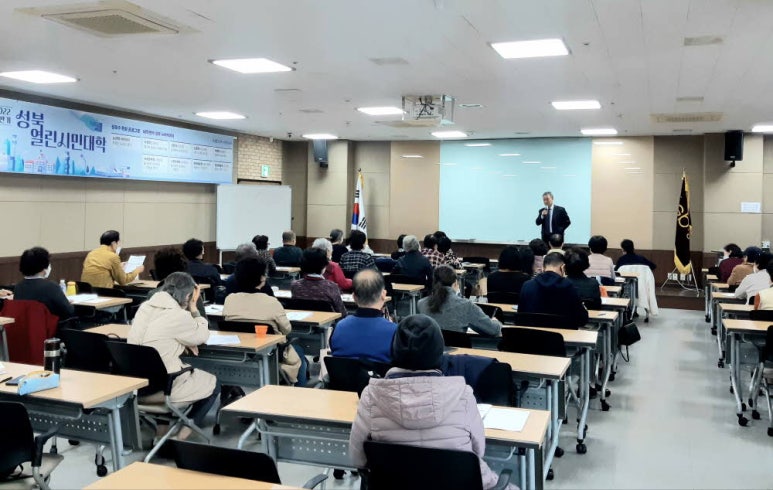 성북구(구청장 이승로)가 24일부터 50대 이상 성북구민을 대상으로 성북열린시민대학 ’성북 노년학 아카데미‘를 운영한다. 성북구평생학습관에서 운영하는 성북열린시민대학의 특별강좌인 ‘노년학 아카데미’는 심리·경제적으로 안정적이고 행복한 인생 후반기를 설...