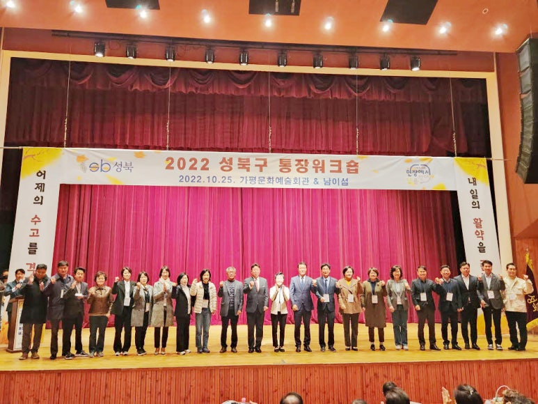 성북구(구청장 이승로) 동네 마당발 ‘통장’들이 25일 한자리에 모였다. 구가 코로나 이후 3년 만에 가평문화예술회관과 남이섬에서 ‘2022 성북구 통장워크숍’을 열고 가을을 만끽하는 자리를 마련한 것. 가평문화예술회관에서 열린 워크숍 본 행사 전에 ...