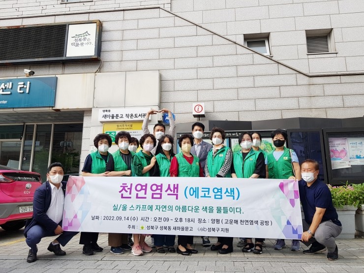 성북구(구청장 이승로) 성북동 새마을문고 회원들이 지난 9월 14일(수) 「경로당 어르신을 위한 천연염색 스카프 만들기」 행사를 개최해 뜻깊은 시간을 보냈다. 새마을문고 성북동 지회(회장 박기순)가 주최한 이번 행사는 문고 회원들이 나뭇잎등 자연소재를...