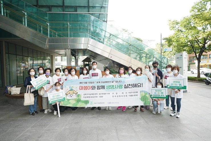 성북구(구청장 이승로)가 15일 ‘세계자살예방의 날’을 맞아 생명존중문화 확산에 기여하고자 자살예방 캠페인을 펼쳤다. 성북구자살예방센터, 성북구보건소, 지역사회보장협의체 생명존중분과, 자살예방 청년 서포터즈, 마음돌보미 등 40여 명이 성북구청과 월...