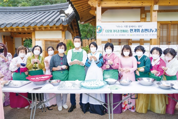 추석명절을 앞두고 성북구(구청장 이승로)에서 다문화가정이 참여하는 송편빚기가 진행됐다. 송편빚기의 달인 성북구 새마을부녀회 20명과 바쁜 일정 속에서도 음식 나눔 행사를 꼼꼼히 챙기면서 ‘앞치마 행정’으로 유명한 이승로 성북구청장이 함께했다. 베트남,...
