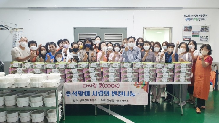 지난 4일 서울 성북구(구청장 이승로) 삼선동 자원봉사캠프는 추석을 맞이하여 ‘다사랑쿡(COOK)-추석맞이 사랑의 송편 나눔’을 가졌다. 이번 행사는 자원봉사캠프 봉사자 회원 및 용문고등학교 학부모 등으로 구성된 자원봉사자들이 우리나라 고유명절 추석을...
