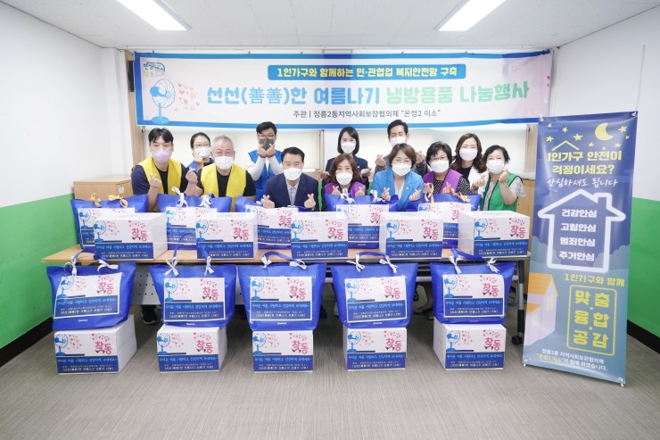 성북구(구청장 이승로) 정릉2동 지역사회보장협의체(회장 김성자)는 지난 26일 주거취약 1인가구와 함께하는 고립예방 복지안전망 구축을 통한 1인가구를 대상으로“선선(善善)한 여름나기, 2차 맞춤형 냉방용품 나눔행사”를 성황리에 개최하였다. 그동안...
