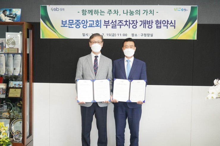 성북구(구청장 이승로)가 보문동에 위치한 보문중앙교회(담임목사 김원석)와 지난 15일 부설주차장 개방 협약을 체결했다. 부설주차장 개방 지원사업은 지역 내 학교 · 종교 · 주거시설 등의 건물소유주(대표)와 자치구 간 협약을 통해 남는 주차공간을 주민들에...