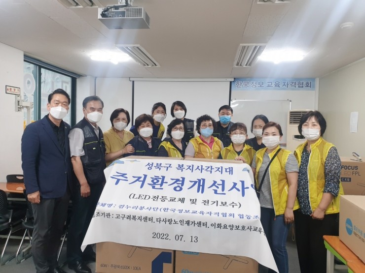 (시사프리신문=김영국 기자) 성북 석관동에 저소득층이나 독거노인들의 주거 환경 개선을 위해 낡은 형광등을 교체해 주는 봉사 단체가 있어 화제가 되고 있다. 한국정보교육자격협회(협회장 이은일)와 컴누리 봉사단(단장 고선애 교수가 바로 그곳이다. ...