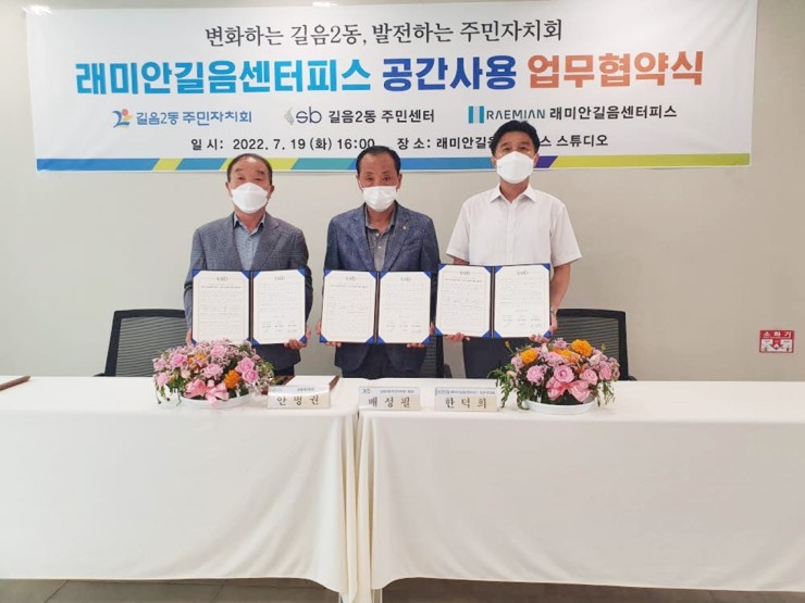 성북구(구청장 이승로) 길음2동 공동주택과 주민자치회, 동주민센터가 주민 여가를 위해 공간 개방을 약속했다. 19일 길음동 소재 공동주택 래미안길음센터피스 입주자대표회의(대표 한덕희), 길음2동주민자치회(회장 배성필), 길음2동주민센터(동장 안병권)는 주민 호응 ...