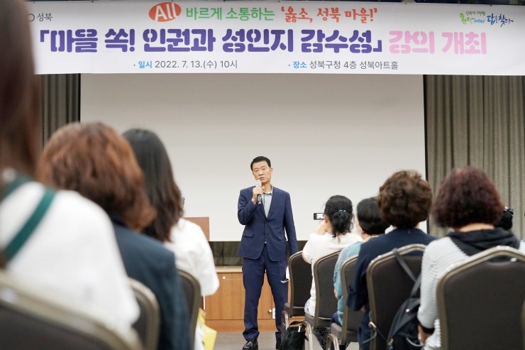 성북구(구청장 이승로)가 마을 사업에 관심이 있거나 참여 중인 구민을 대상으로 ‘마을 쏙! 인권과 성인지 감수성’ 교육을 진행했다. 지난 13일 성북아트홀에서 펼쳐진 교육은 젠더와 인권 이해경 대표가 맡았다. 이 대표는 마을 속에서 알고 지켜야 할 ...