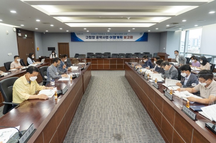 성북구(구청장 이승로)가 28일 성북구청 6층 미래기획실에서 민선 8기 구청장 공약사업의 본격적인 추진을 위한 첫 단계로 이승로 구청장을 비롯해 공약별 해당 부서장 등 30여 명이 참석한 가운데 민선8기 공약사업 이행계획 보고회를 개최했다. 이번 보고...