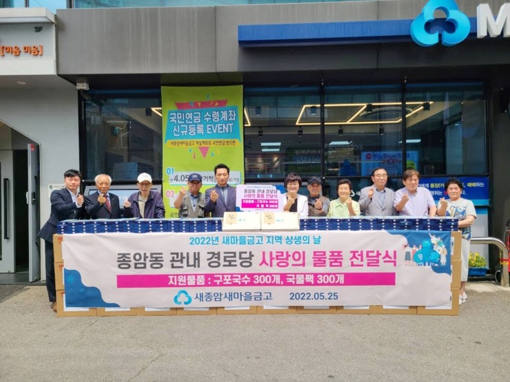 성북구 새종암새마을금고(이사장 김성희)에서 가정의 달을 맞아 지난달 25일 관내 경로당에 국수와 국물팩을 각각 300개씩 전달했다. 지난번 열무김치와 라면 기부에 이어 올해 두 번째 나눔 실천이다. 새마을금고는 지역기반 상호금융기관으로 수익을 지역에 ...