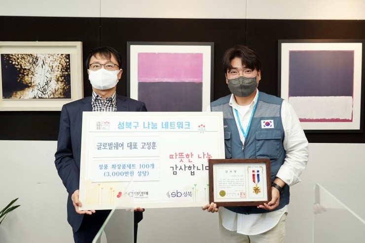 (사)글로벌쉐어가 복지사각지대의 소외이웃을 위해 3천만 원 상당의 화장품 세트를 서울시 성북구에 기탁했다. 글로벌쉐어는 가난과 질병, 재난 등으로 고통 받는 전 세계 소외 이웃을 돕기 위해 설립한 외교부 소관 비영리 국제구호단체로 이날 기탁한 화장품...