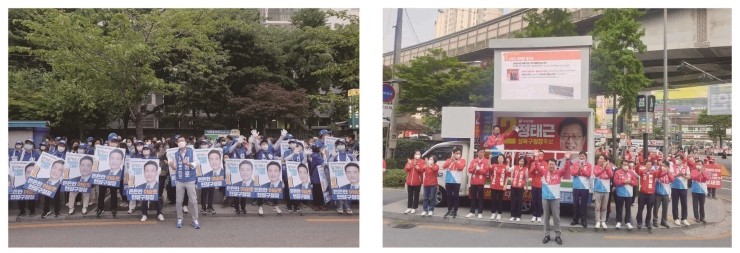 ▲이승로 더불어민주당 성북구청장 후보 출정식 ▲정태근 국민의힘 성북구청장 후보 출정식 (시사프리신문=김영국 기자) 더불어민주당 소속 이승로 현 성북구청장과 국민의힘 소속 정태근 전 국회의원...