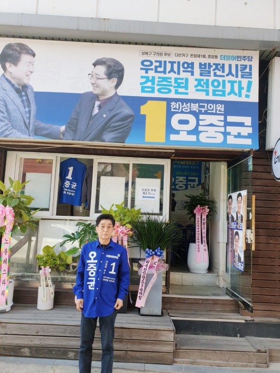 (시사프리신문=김영국 기자) 성북구의원 다선거구(돈암1동, 종암동)에서 3선에 도전하는 오중균 현 구의원. 종암동에서는 일 잘하고, 참여 잘하는 구의원으로 통한다. 그런 오 후보가 지난 9일 종암동에서 선거사무소 개소식을 갖고 지역주민들...