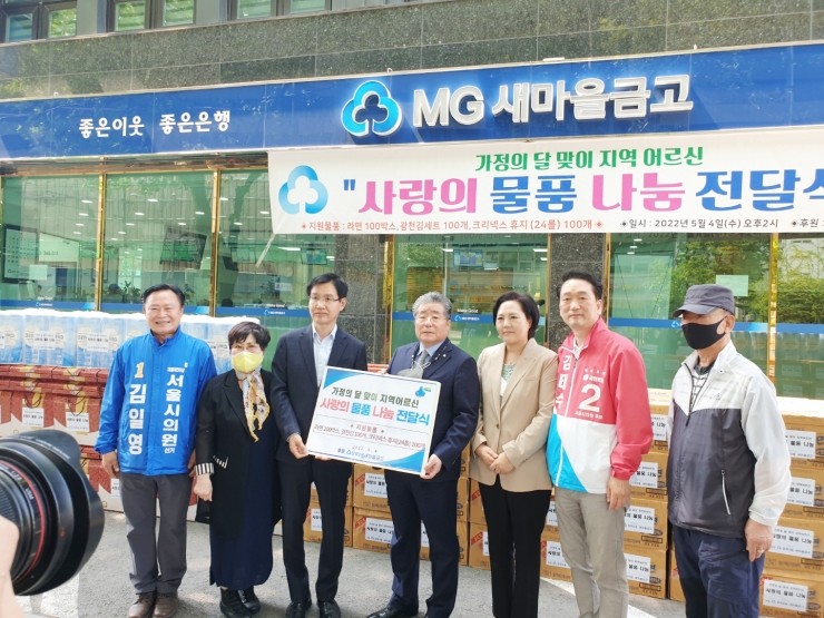 (시사프리신문=김영국 기자) 장위2동 새마을금고(이사장 한종열)에서는 가정의 달을 맞아 지난 4일 오후 생활에 필요한 물품을 장위2동주민센터(동장 김용환)에 전달하는 행사를 가졌다. 이날 행사에는 한종열 이사장을 비롯해 진선아 의장대행, 김...