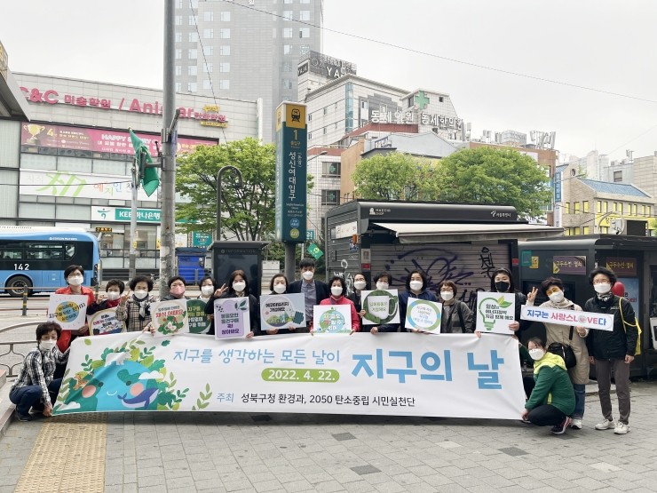 성북구가 지난 22일 52주년 ‘지구의 날’을 맞이하여 ‘성북구 2050 탄소중립 시민실천단’과 함께 지구를 살리는 일상생활 속 탄소중립 실천 방법 홍보를 위한 거리 캠페인을 실시했다. 이날 캠페인은 실천단과 성북구청의 민·관 합동으로, 유동인구가 많...