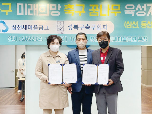 (시사프리신문=김영국 기자) 삼선새마을금고(이사장 이숙희, 이하 금고)와 성북구축구협회(회장 유병만, 이하 협회)는 지난 18일 ‘관내 저소득층 아동·청소년 대상 축구교실 운영’에 대한 후원을 약속하고 협약을 체결했다. 이번 협약은 금고에서 협회에...