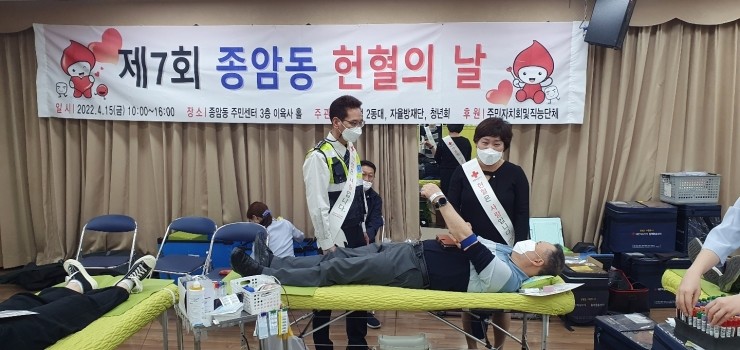 코로나19 장기화로 인한 혈액 수급 위기를 극복하기 위해 성북구 종암동 주민이 올해도 팔을 걷었다. 종암동 자율방범 2동대, 자율방재단, 청년회가 주관하고 주민자치회 및 직능단체가 후원한‘제7회 종암동 헌혈의 날’ 행사가 15일 오전 10시부터 오후...