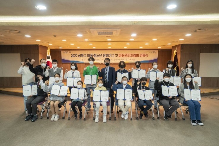 성북구가 아동·청소년의 적극적 참여와 권리권 보장을 위해 2022년 성북구 아동·청소년 참여기구 및 아동권리지킴이 위촉식을 지난 20일 개최했다. 올해는 9기 어린이·청소년의회와 14기 아동·청소년 참여위원회가 합동으로 위촉식을 개최하여 참여기구원들이...